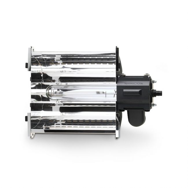 Il Riflettore Alpha Optics 98 di Dimlux è stato progettato e ralizzato come un'unica e robusta unità: riflettore, reattore e lampada sotto tutti protetti sotto una sola struttura, questo riduce il rischio di interferenza elettromagnetica (EMI) e garantisce che il flusso di energia continuo raggiunga la lampada, senza connessioni esterne o seconde parti, da collegare: quindi è libera e diretta anche la posizione del Riflettore sulla zona di coltivazione.