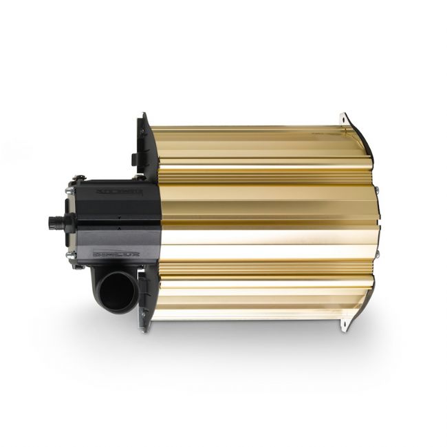 - Flusso ottimale del calore nella lampada anche attraverso una ventola che attivamente fa circolare l'aria nella lampada e la fa uscire dall'apertura rotonda di 50 mm